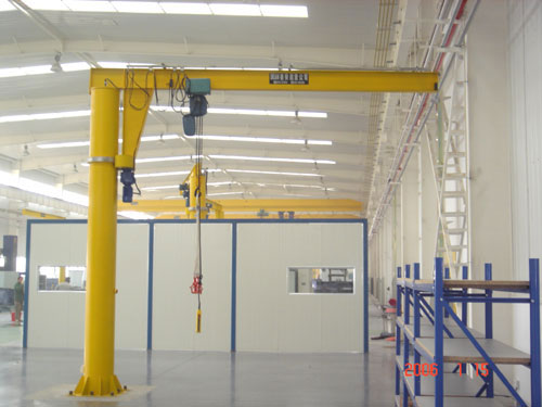柱式旋臂起重機是CD1、MD1型電動葫蘆及手拉葫蘆配套使用的一種小型起重機械。葫蘆沿工字鋼作直線運動和旋臂作旋轉運動。該系列產品有BZ型、BZA型、BZB型、BZC型、BZY型及Bx型墻式吊。